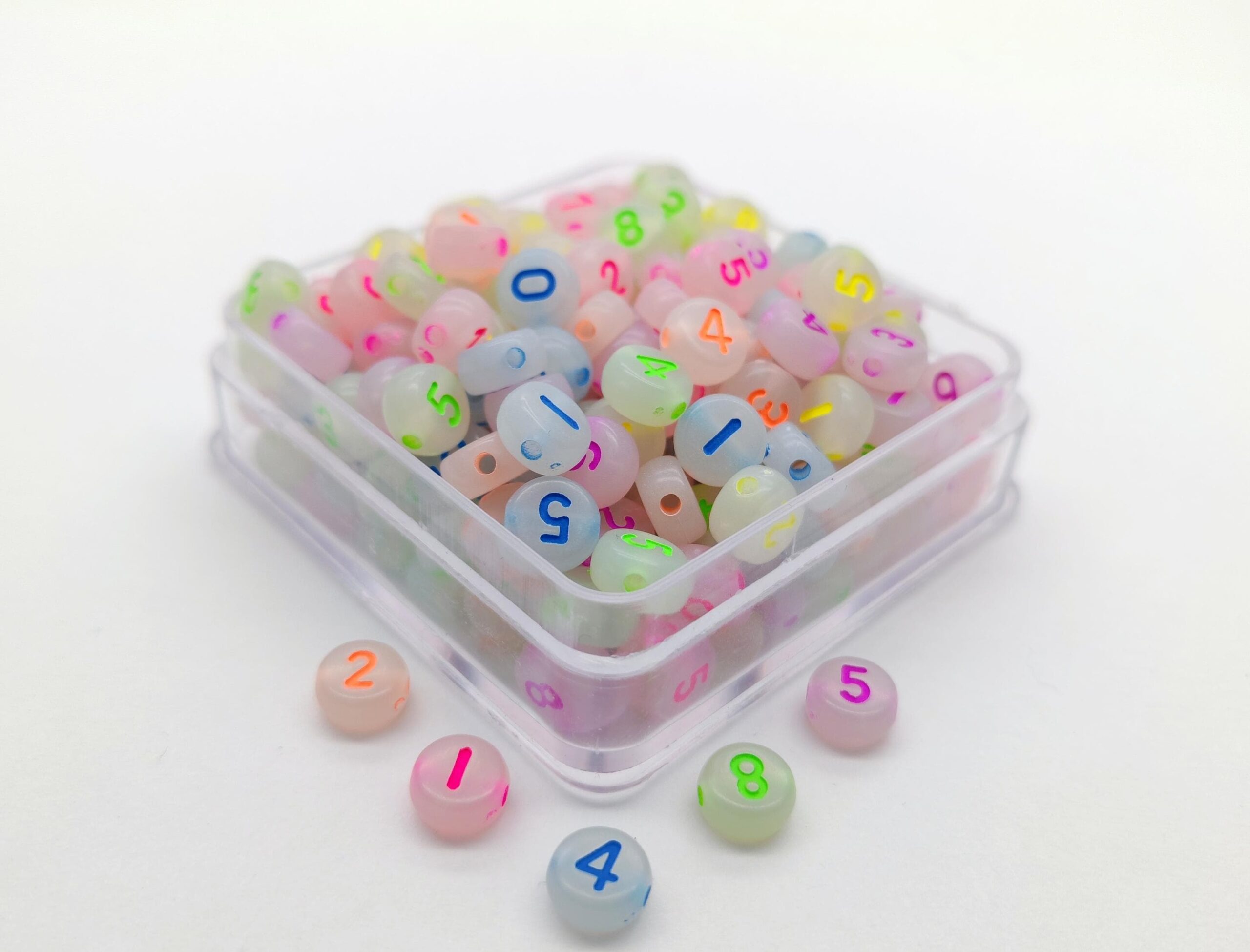 Pastilla de acrílico con números grabado en el centro. Ideal para pulseras, collares y accesorios personalizados.