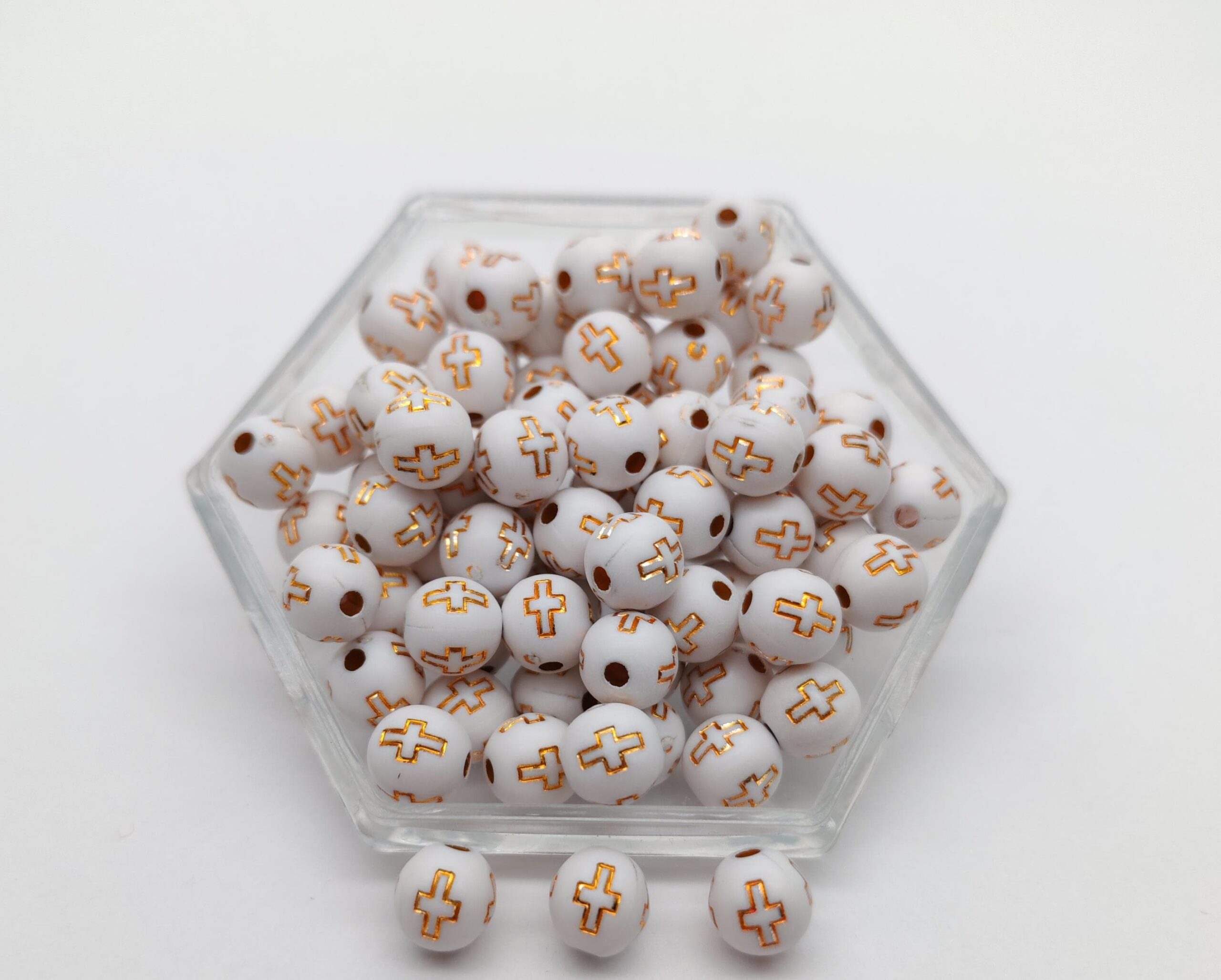 Pepa redonda de 8 mm con grabado de cruz. Ideal para rosarios, decenarios y accesorios religiosos.