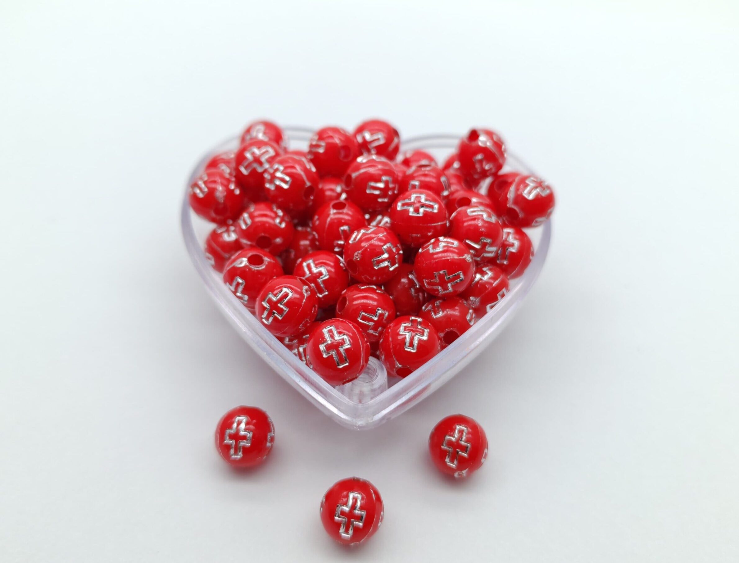 Pepa redonda de 8 mm con grabado de cruz. Ideal para rosarios, decenarios y accesorios religiosos.