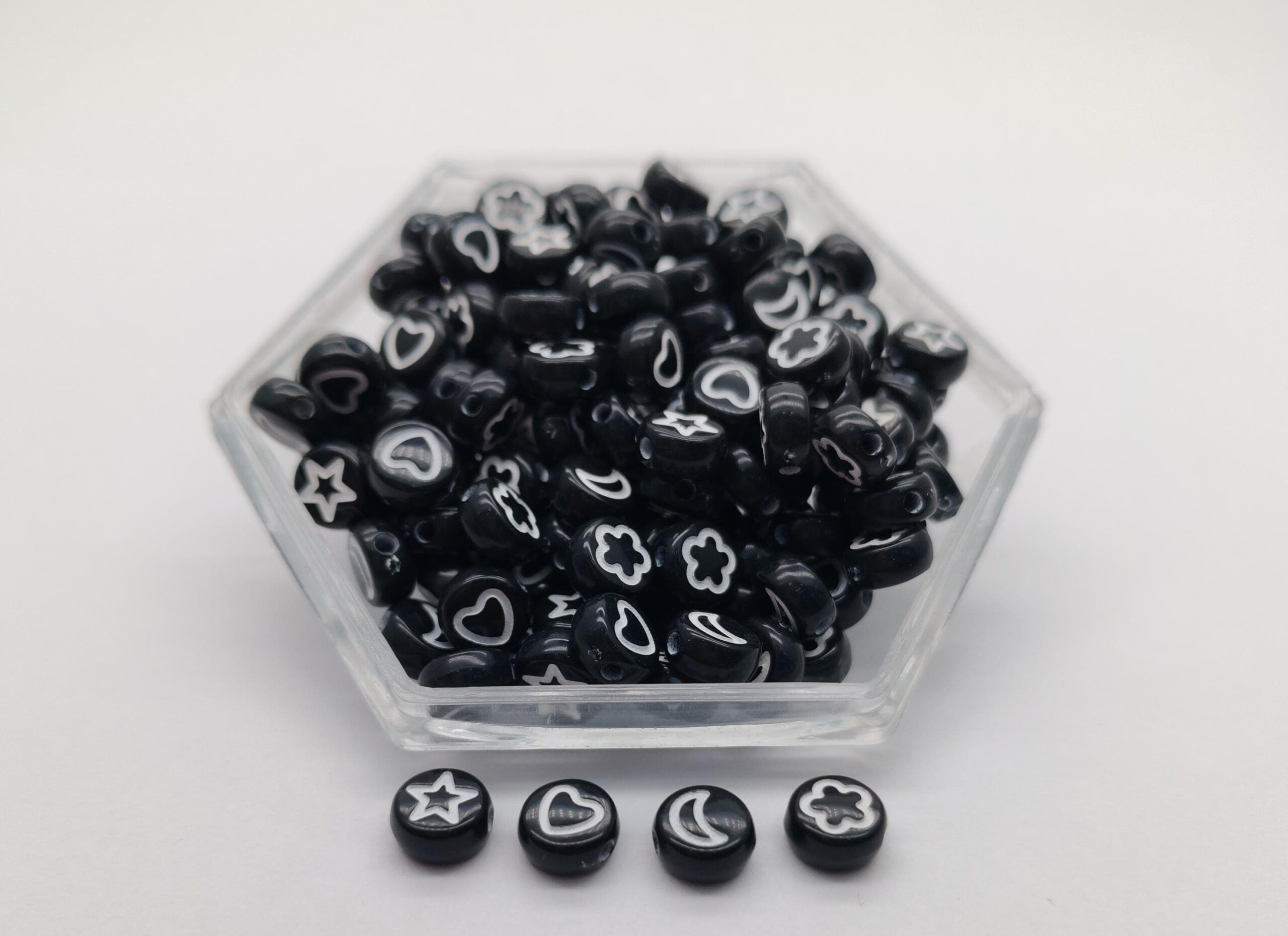Pastilla de acrílico con figuras grabadas en el centro. Ideal para pulseras, collares y accesorios personalizados.